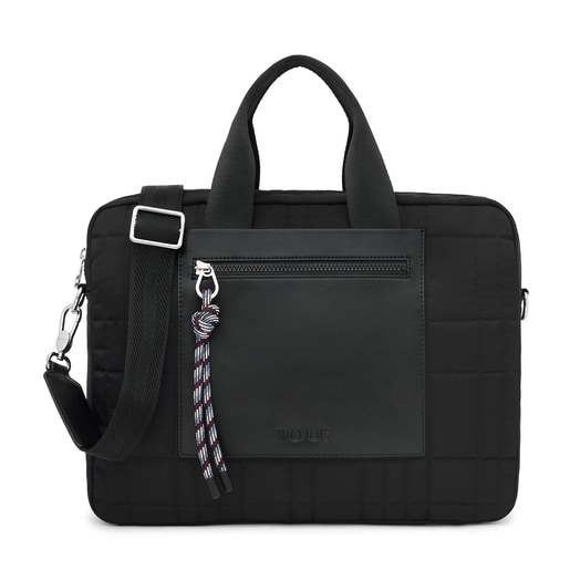תיק מסמכים מסדרת Empire Padded של TOUS, עשוי מניילון ממוחזר בצבע שחור עם עיטור עור סינתטי. סגירה באמצעות רוכסן. כיס חזיתי פתוח אחד וכיס נוסף עם רוכסן. כיס פנימי פתוח. רצועה אחורית כדי להצמיד את תיק המסמכים למזוודת טרולי. ידיות קבועות ורצועה אלכסונית מתכווננת וניתנת להסרה. מידות (גובה x רוחב x עומק): 27 x 38 x 7 ס"מ.