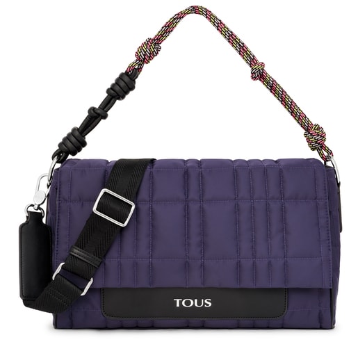 תיק צד מסדרת Empire Padded של TOUS בגודל גדול, עשוי מניילון ממוחזר בצבע סגול עם עיטור עור סינתטי. סגירת דש עם כפתור מגנטי להידוק. כיס חזיתי פתוח וכיס פתוח בחלק הפנימי. רצועת כתף מקובעת ורצועת הצלבה נתיקה ומתכווננת. מידות (גובה x רוחב x עומק): 24 x 35.5 x 13 ס"מ.