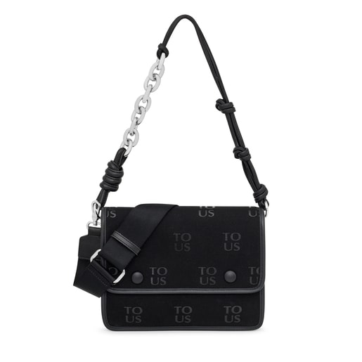 תיק צד Audree של TOUS מקולקציית TO-US בגודל בינוני מאריג קנבס עשוי כותנה בגימור עור סינתטי בצבע שחור. תיק יד עם שני תאים המופרדים בכיס עם רוכסן. סגירת דש עם שני כפתורים מגנטיים. רצועת ידית קצרה ורצועה נתיקה ארוכה ומתכווננת עם סוגרי קרבינה. מידות (גובה x רוחב x עומק): 20 x 25 x 19 ס"מ.