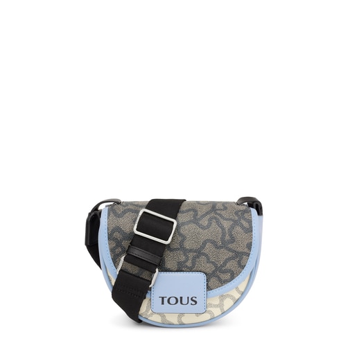 תיק קרוס TOUS קטן בצורת חצי סהר מקולקציית Amaya Kaos Icon, עשוי מקנבס בצבע בז' עם גימור כחול מעור סינתטי. סגירת דש עם סוגר מטאלי דמוי אבזם. רצועה מתכווננת ארוכה. מידות (גובה x רוחב x עומק): 16 x 19 x 8 ס"מ.