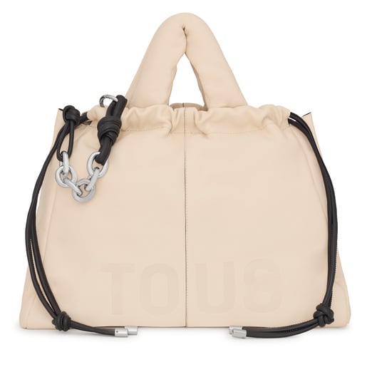 תיק TOUS Cloud גדול עם רצועת כתף אחת מעור בצבע בז'