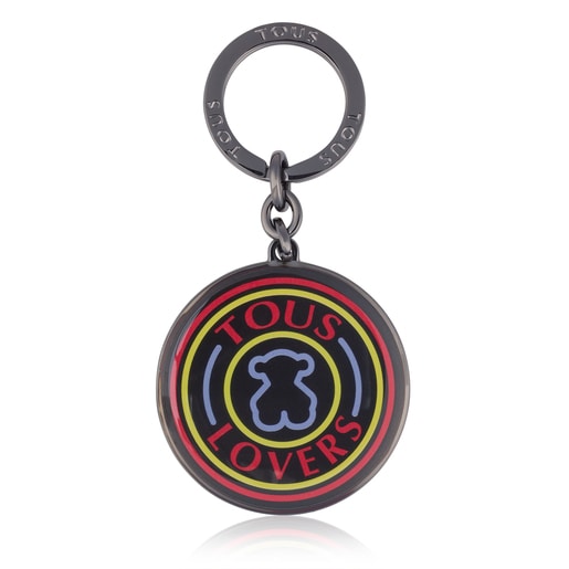 TOUS key ring from Tous Lovers collection in metal with resin and tous lovers logo in black-multi color. Personalized appliques in gun color. Measurements: 5,8x5,3x0,3 cm.