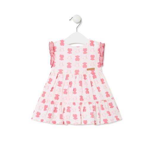 Tous Baby sleeveless dress with round neck. Made of soft cotton printed with bears and little stars in a casual A-line cut. Sleeve ends in contrasting gingham fabric. Composition: 100% Cotton // Lining: 100% Cotton. Colour: Pink. Made in the EU.