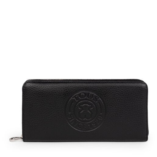 ארנק TOUS New Leissa בינוני מעור עגל בצבע שחור. פנים: 8 תאים לכרטיסים, תא אחד עם רוכסן ו-4 תאים לפריטים אחרים. מידות: 11 x 19.5 x 2 ס"מ.