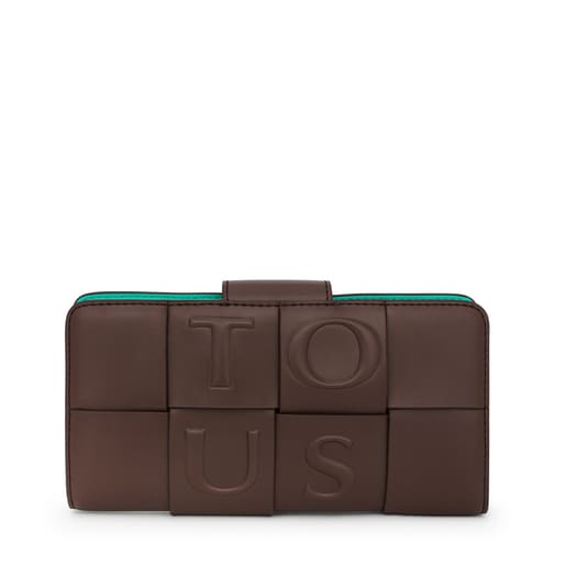 הצטרפו לטרנד העדכני ביותר: אביזרים עם אפקט קלוע ו-Logomania. הארנק הזה, שמגיע בצבע חום עם פאנלים קלועים מעור סינתטי, משתייך לקולקציית TOUS Damas. קווים מלוטשים ל-Look עירוני נחשק יותר.