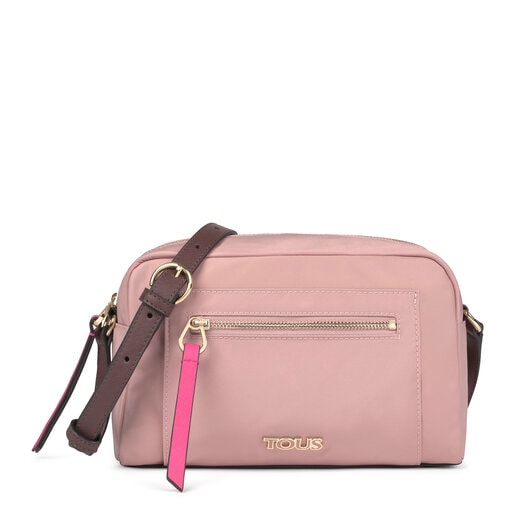 TOUS crossbody bag from the Shelby collection in leather-effect vinyl combined with pink recycled nylon. Zipper closure. Adjustable crossbody strap. The handbag has 1 exterior pocket with zipper and 1 flat interior pocket. Measurements: 35 x 26 x 7 cm.