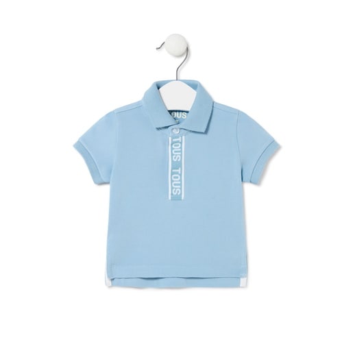 Tous Baby short-sleeved polo t-shirt. Button placket and TOUS logo in jacquard. Made from soft piqué fabric in a straight cut. Composition: 95% Cotton, 5% Elastane. Colour: Sky blue.