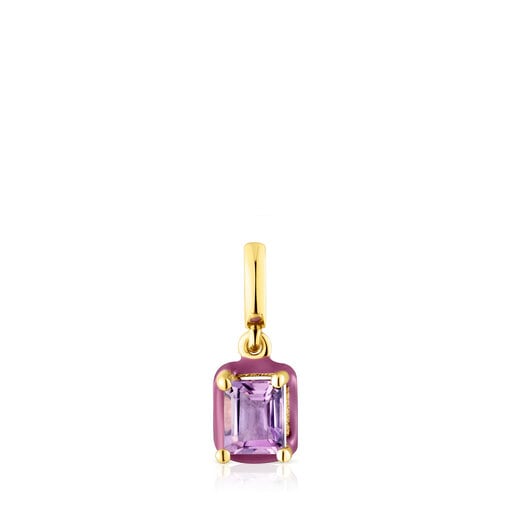 תליון TOUS Vibrant Colors עם אבן אחלמה מלוטשת בצורת מתומן בגודל 5.6 x 4.5 מ"מ, מוקפת באמייל סגול.