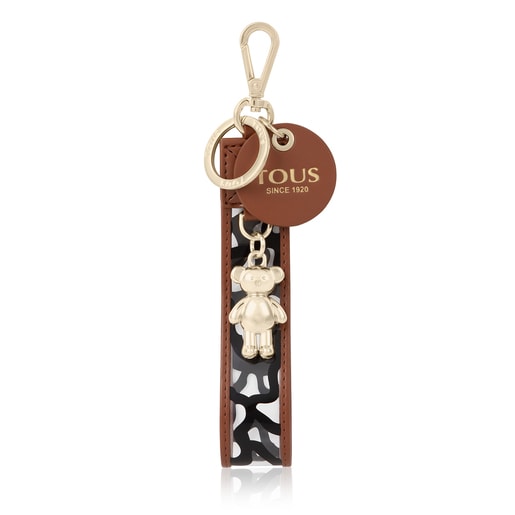 TOUS key ring from the Vinyl Strap collection in transparent and brown vinyl with Kaos print. Measurements: 10 x 3 cm
