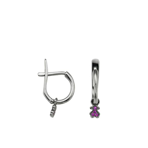 TOUS Fancy hoop earrings in 18kt white gold with pink sapphires.Total weight: 0.05ct.