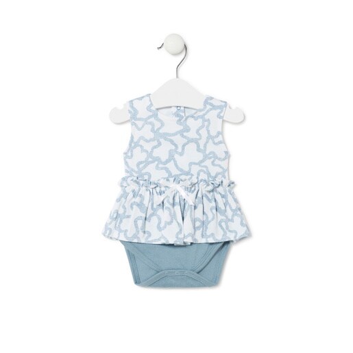 Tous Baby sleeveless bodysuit with round neck and A-line gathered skirt. Made in soft, plain and Kaos print cotton. Fastens with poppers between the legs. Composition: 100% Cotton. Colour: Blue. OEKO/TEX* certified. Made in the EU.