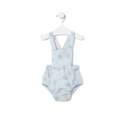 Tous Baby romper with buttoned straps, straight neckline and wide straight fit. Made in soft Bold Bear print cotton. Composition: 100% Cotton. Colour: Sky blue. OEKO/TEX* certified. Made in the EU.