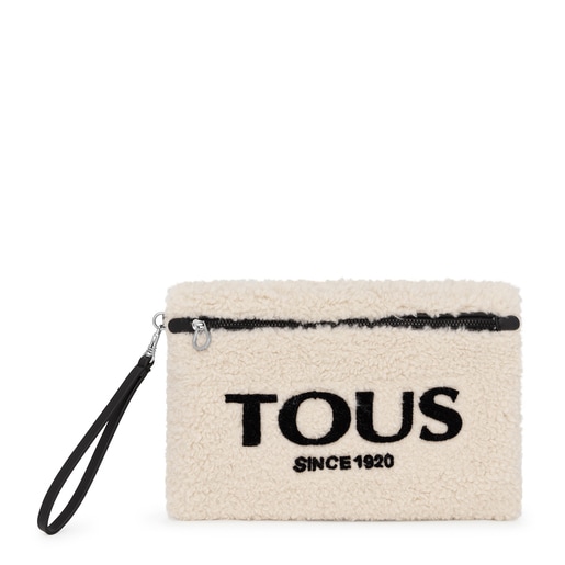 TOUS Amaya Warm clutch bag in beige-colored faux fur. It has a zipper closure and a detachable short handle strap. This fantastic soft handbag will become your perfect accessory this winter. Measurements (height x width x depth): 19 x 28 x 2 cm.