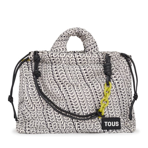 Attitude, personality and a lot of fun in our large shoulder bag in black and white recycled polyester from the TOUS Cloud collection. Get ready to turn heads!