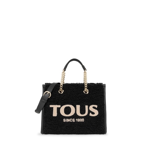 Medium TOUS Amaya Warm shopping bag in black-colored faux fur. The chain incorporated into the handles gives the piece a touch of sophistication. It also includes an adjustable and detachable crossbody strap. It fastens with a magnetic button. This fantastic soft handbag will become your perfect accessory this winter. Measurements (length x width x height): 27 x 16 x 22 cm.