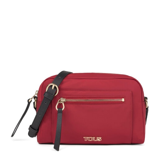TOUS crossbody bag from the Shelby collection in leather-effect vinyl combined with red recycled nylon. Zipper closure. Adjustable crossbody strap. The handbag has 1 exterior pocket with zipper and 1 flat interior pocket. Measurements: 35 x 26 x 7 cm.