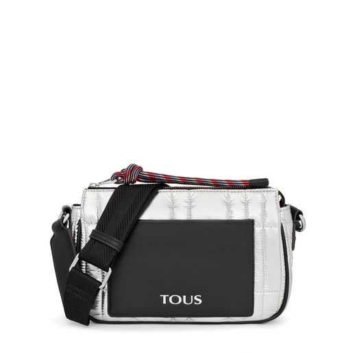 Medium TOUS Empire Padded crossbody bag made from silver-colored recycled nylon combined with synthetic leather trim. Crossbody bag with zipper closure, open front pocket, open inside pocket and adjustable strap. Measurements (height x width x depth): 15 x 27 x 7 cm.