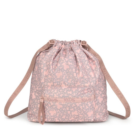 TOUS nylon flat backpack from the Kaos Mini Sport collection with pink tone print. Ruck closure. Interior pocket with zipper. Exterior pocket with zipper. Measurements: 40 x 42 x 13 cm.