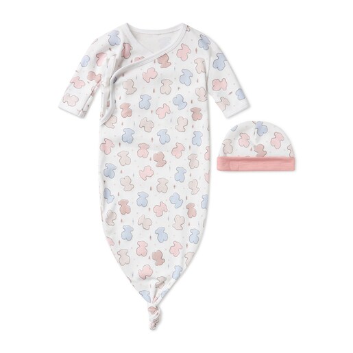 Tous Baby footmuff-style long-sleeved wrap-over pyjamas and hat set. Made in soft cotton printed with multicoloured bears and coordinating stripy hat turn-up. The sack shape comforts baby during their first months of life. Composition: 100% Cotton. Colour: Pink. OEKO/TEX* certified. Made in the EU. first months of life. Composition: 100% Cotton. Colour: Pink. OEKO/TEX* certified. Made in the EU.