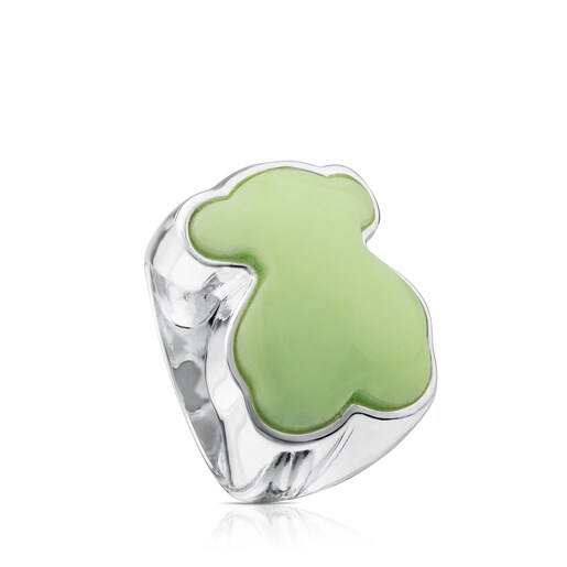 TOUS New Color ring in sterling silver with gaspeite. Size: 2.1 cm. [These stones are natural so it may be difficult to find two pieces of the same color.]