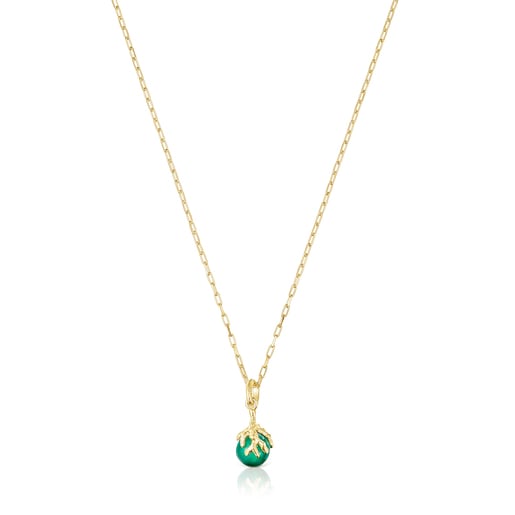 TOUS Oceaan Color necklace in silver vermeil with a 9 mm chrysoprase held by a coral-shaped branch. Necklace length: 45 cm, with ring at 40 cm. Sterling silver plated with 18kt gold with a thickness of 3 to 5 microns and with no other metal between them. Production technique: Casting.