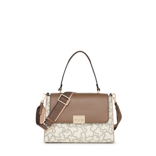TOUS Kaos Legacy city bag in waterproof canvas with a beige and black Kaos print. It includes other details in brown and pale pink calfskin leather. Featuring a flap and a push closure. Includes an inner pocket with a zipper. It can also be used in two different ways: either as a shoulder bag or as a crossbody bag thanks to the adjustable and detachable strap provided. Measurements (height x width x depth): 22 x 30 x 10 cm.