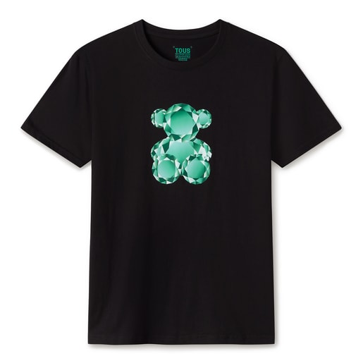 TOUS Bear Gemstonesがターコイズカラーでプリントされた、ブラックカラーのショートスリーブTシャツ、TOUS Bear Gemstones。素材構成:コットン100%。ワンサイズ。サイズ(着丈x身幅):72x55cm。