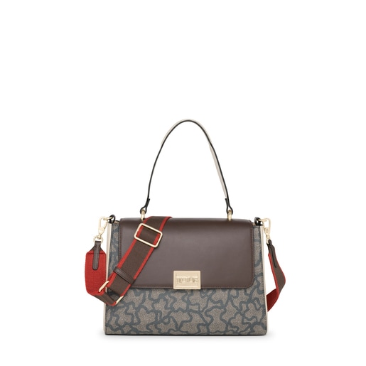 TOUS Kaos Legacy city bag in waterproof canvas with a black and beige Kaos print. It includes other details in brown, beige and red calfskin leather. Featuring a flap and a push closure. Includes an inner pocket with a zipper. It can also be used in two different ways: either as a shoulder bag or as a crossbody bag thanks to the adjustable and detachable strap provided. Measurements (height x width x depth): 22 x 30 x 10 cm.