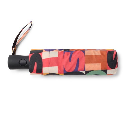TOUS Mimicコレクションのポリエステル素材にブラックでプリントを施した折りたたみ傘となら、どんより雨の日も楽しくなる。