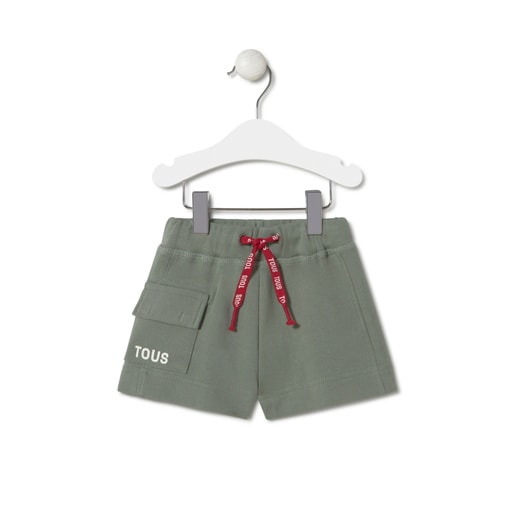 Tous Baby straight-cut sports Bermudas with elasticated drawstring waist. Made in soft woven fabric with side cargo pocket. Composition: 100% Cotton. Colour: Khaki. Details: Wash before use, wash with similar colours, do not tumble dry, wash at 30º.