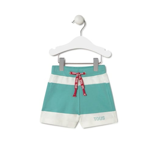 Tous Baby straight-cut sports Bermudas with elasticated drawstring waist. Made in soft woven cotton fabric with thick stripes and TOUS logo on the side. Composition: 100% Cotton. Colour: Mist. Details: Wash before use, wash with similar colours, do not tumble dry, wash at 30º.
