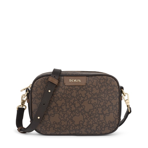 ビニール素材にブラウンのKAOSプリントをあしらったクロスボディバッグ、TOUS Kaos Mini。ファスナー開閉式。内装:DIN A4サイズのポケット2つ、スマートフォンが入るサイズのポケット1つ、ペンが入るサイズのポケット2つ、カード用スロット3つ。サイズ:22,5x15x7,5cm。