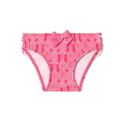 Tous Baby bikini bottoms with rear ruffles and front bow. Printed with linear TOUS logo. Characteristics: UPF 50+ UV PROTECTION. Composition: 81% Polyester, 19% Elastane. Characteristics: UPF 50+ UV PROTECTION. Colour: Coral. Made in the EU. Details: Wash before use, wash with similar colours, do not tumble dry, wash at 30º.