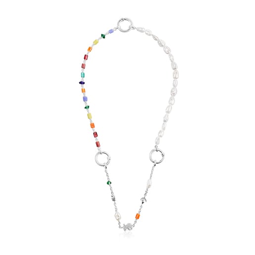 Immerse yourself in the beauty of the sea with the Oceaan collection – this necklace in sterling silver, cultured pearls and multicolored glass is inspired by the treasures of the deep and the mixture of colors and textures we find in them. The perfect jewelry for the season!