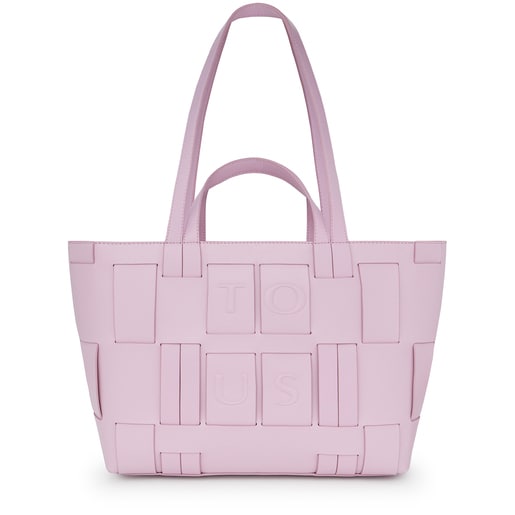 TOUS Damas tote bag made with mauve colored braided panels in synthetic leather on the outside, and beige on the inside. It has zip fastening and an open pocket inside. It features two handles and two shoulder straps. Measurements (height x width x depth): 25 x 45 x 15 cm.