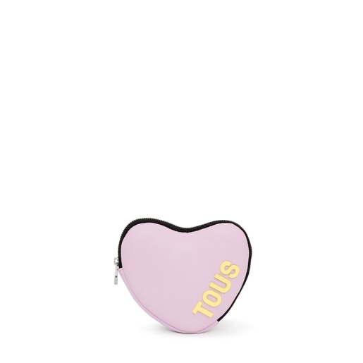 モーブカラーの合成レザー製ハート型コスメポーチ、TOUS Carol。ファスナー開閉式。サイズ(高さx幅x奥行き):13x14.5x2cm。