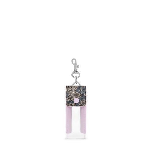透明なビニール素材にモーブカラーのトリムが施されたリップスティック用ハンギングケース、TOUS Kaos Summer。リップスティックをいつでも手元にリザーブできる、ハンドバッグにハングさせるのにぴったりなフックも備わっています。ブラックの合成レザーにプリントが施されたスナップボタン留めのフラップで開閉、モーブカラーの内張りが施されています。サイズ(高さx幅x奥行き):8.5x3x1.5cm。