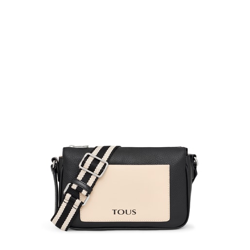 ブラックのLWG認証付き牛革レザー素材を使用した、ミディアムサイズのクロスボディバッグ、TOUS Empire。フロントと内側にオープンポケットがそれぞれ1つずつと調節できるクロスボディストラップが付いたファスナー開閉式クロスボディバッグ。サイズ(高さx幅x奥行き):16x25x7cm。