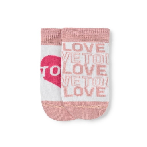 Pack of 2 pairs of Tous Baby jacquard socks with heart and TOUS logo. Made with elastane for enhanced comfort and to help keep the socks on baby's feet. Composition: 80% Cotton 15% Polyamide 5% Elastane. Colour: Pink. Made in the EU. Details: Wash before use, wash with similar colours, do not tumble dry, wash at 30º.