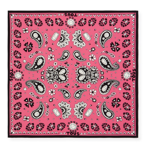 ピンクカラーのプリントがあしらわれたバンダナスカーフ、TOUS Gems。素材構成:リサイクルポリエステル100%。サイズ: 70x70cm。