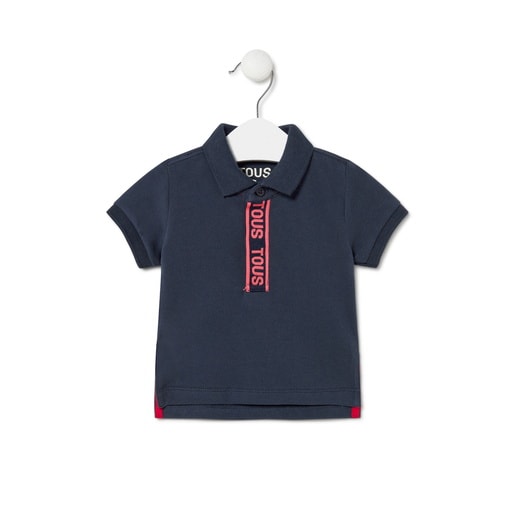 Tous Baby short-sleeved polo t-shirt. Button placket and TOUS logo in jacquard. Made from soft piqué fabric in a straight cut. Composition: 95% Cotton, 5% Elastane. Colour: Navy blue.