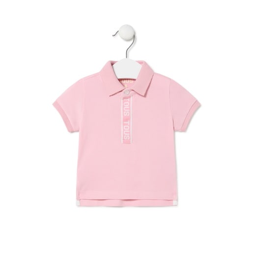 Tous Baby short-sleeved polo t-shirt. Button placket and TOUS logo in jacquard. Made from soft piqué fabric in a straight cut. Composition: 95% Cotton, 5% Elastane. Colour: Pink.