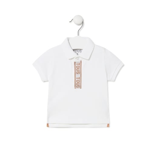 Tous Baby short-sleeved polo t-shirt. Button placket and TOUS logo in jacquard. Made from soft piqué fabric in a straight cut. Composition: 95% Cotton, 5% Elastane. Colour: White.