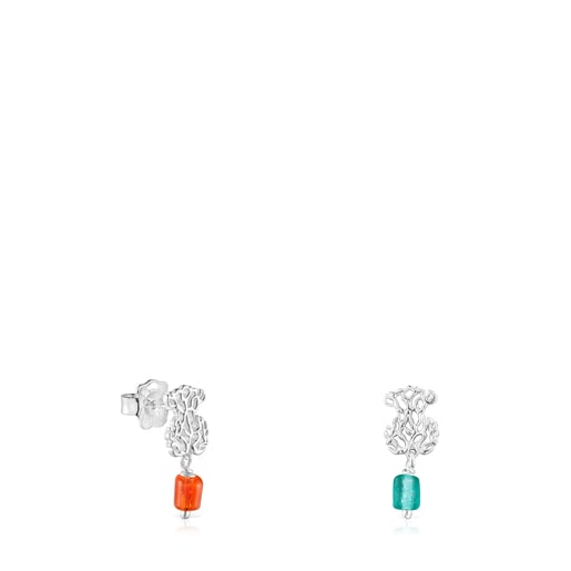 Oceaanコレクションより珊瑚柄のくまモチーフとグリーン、オレンジのガラスの組み合わせピアス。くまサイズ:10mm スタッド式留め具 素材:18金イエローゴールド キャスティング製法