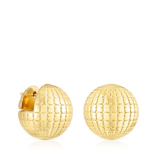 TOUS St. Tropezコレクションからのラインナップ、ゴールドコーティングシルバーにエンボス加工のベアをあしらったディスコボールシェイプのピアスで、ハッピーなパーティータイムをもう一度。最高にキラキラしたジュエリーと一緒にこの夏を最大限に楽しもう!