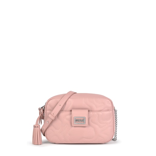 Small TOUS bear-shaped crossbody bag from the Kaos Dream collection in padded polyurethane with a pink leather-effect finish. Long adjustable crossbody strap. Zipper closure. One inner pocket and two flat external pockets. Measurements: 8 x 25 x 16 cm.