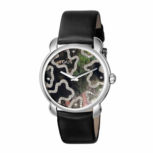 黒いサテンバンドとダイヤモンドが付いたステンレス腕時計 Kaos Slim