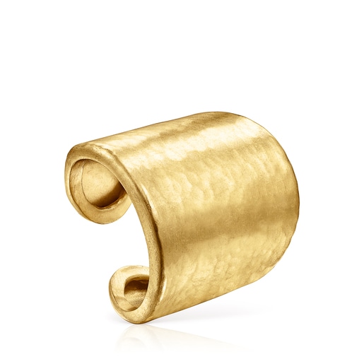 Anillo TOUS Colombiana con baño de oro 18 kt sobre plata con acabado martelé, que es el acabado irregular que da a la pieza el aspecto envejecido. Diseñado para realzar la luz. Ancho: 2,5 cm. Plata de primera ley recubierta de oro de 18kt con un espesor de 3 a 5 micras y sin ningún otro metal entre ambos.