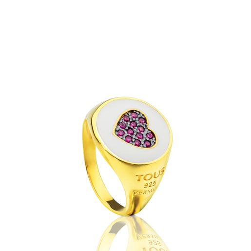 Anillo TOUS Bahia con baño de oro 18 kt sobre plata y rubí. Motivo: 1,45 cm. Plata de primera ley recubierta de oro de 18kt con un espesor de 3 a 5 micras y sin ningún otro metal entre ambos.