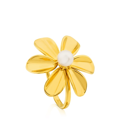 Anillo TOUS Happy Moments con baño de oro 18 kt sobre plata y perla de 5-5,5 cm. Motivos: 1 cm. Plata de primera ley recubierta de oro de 18kt con un espesor de 3 a 5 micras y sin ningún otro metal entre ambos.